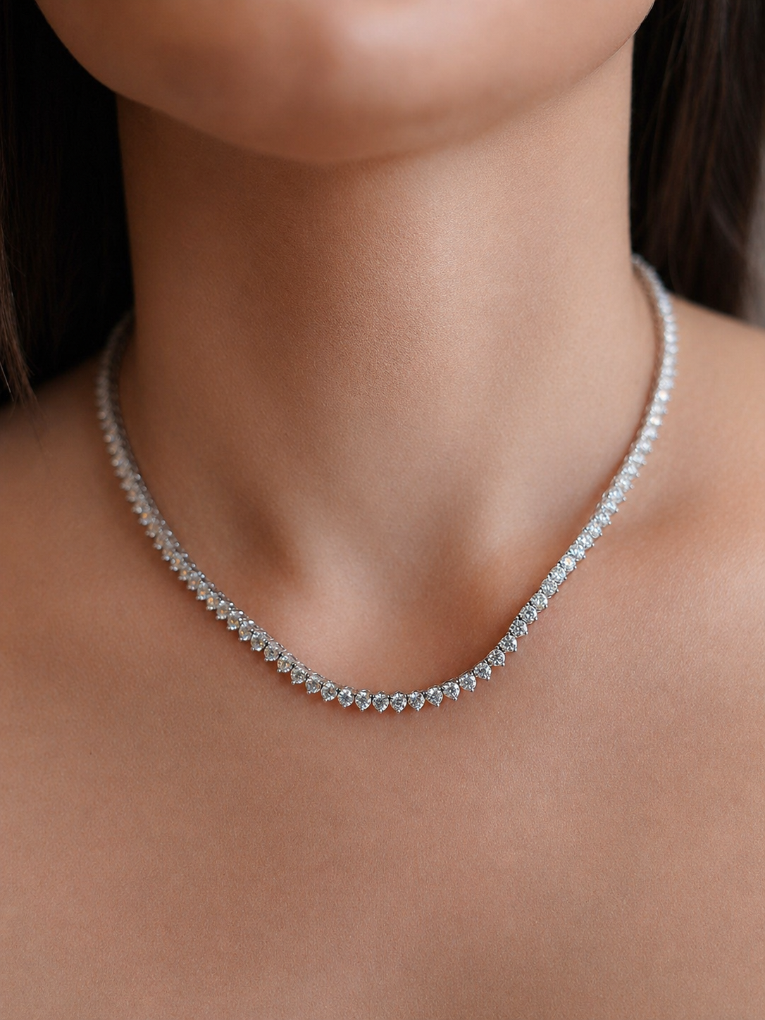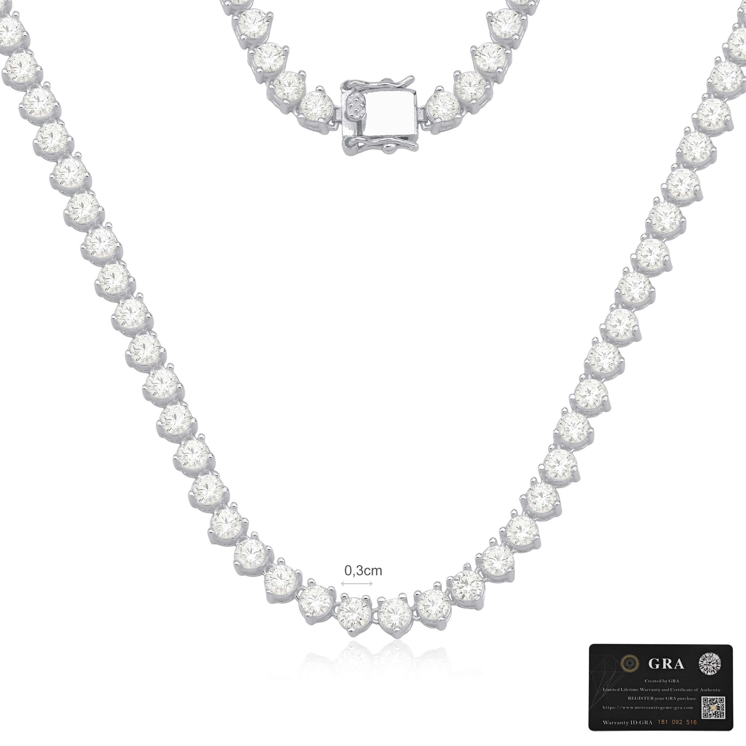 Gargantilha Rivieira Prata 925 Pedras Moissanite 3mm
